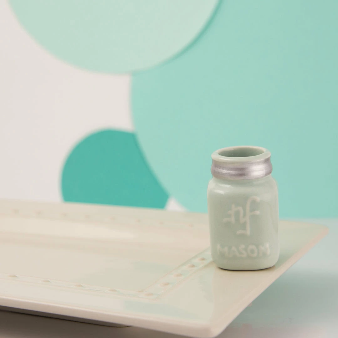 Mini blue mason jar with hollowed out middle to hold toothpicks for your appetizers!ย Nora Fleming minis can be inserted into Nora Fleming bases and switched out to match any occasion or event you may be hosting!