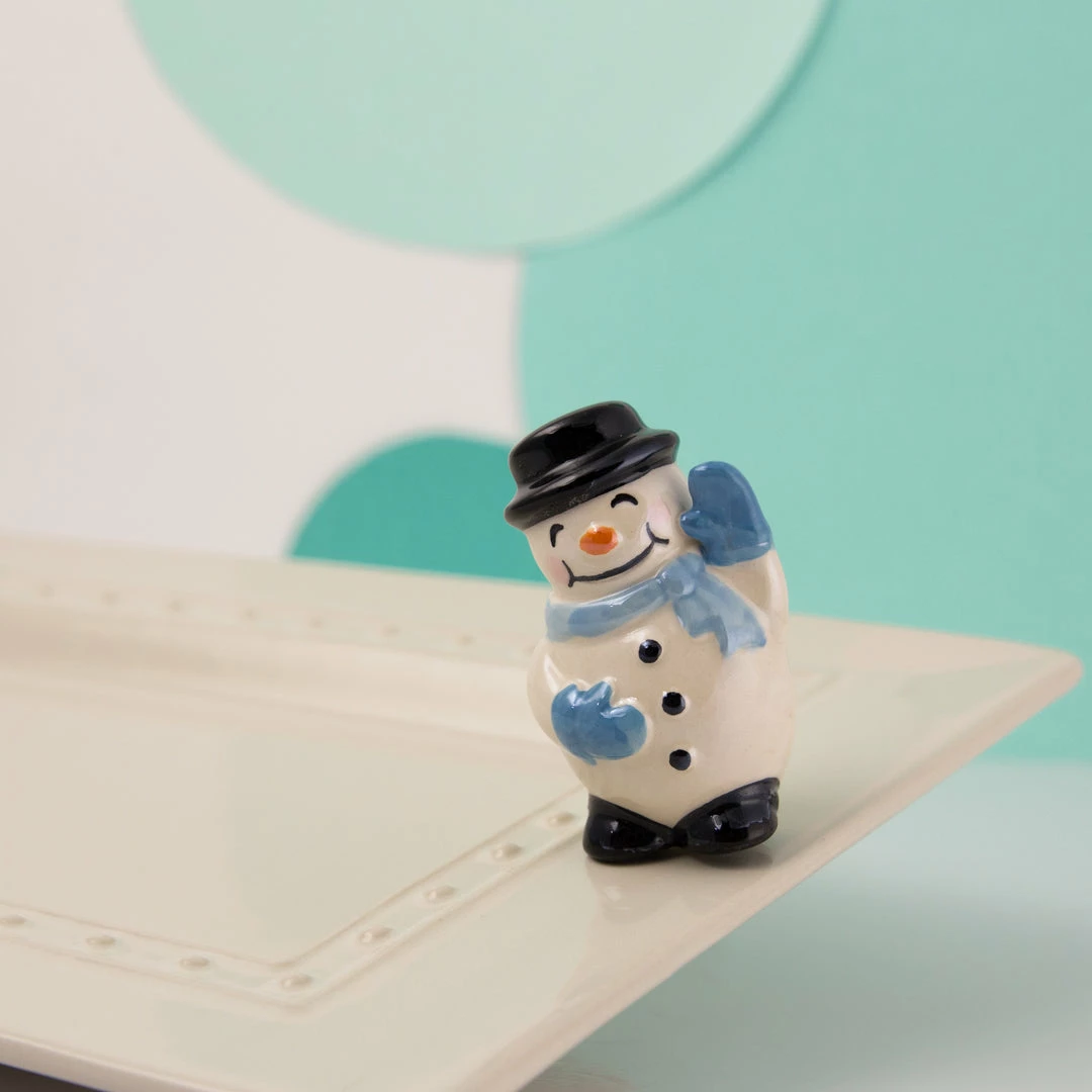 Mini white and blue “Frosty pal” snowman.ย Nora Fleming minis can be inserted into Nora Fleming bases and switched out to match any occasion or event you may be hosting!